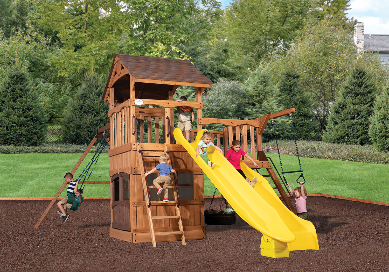 Swing sets crafted from durable cedar wood