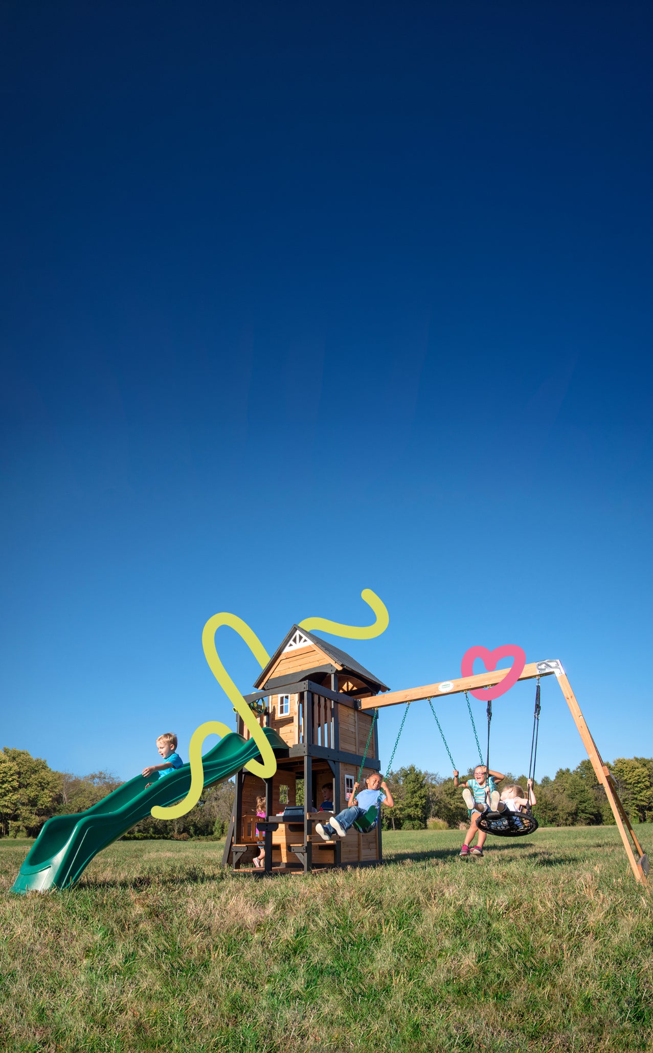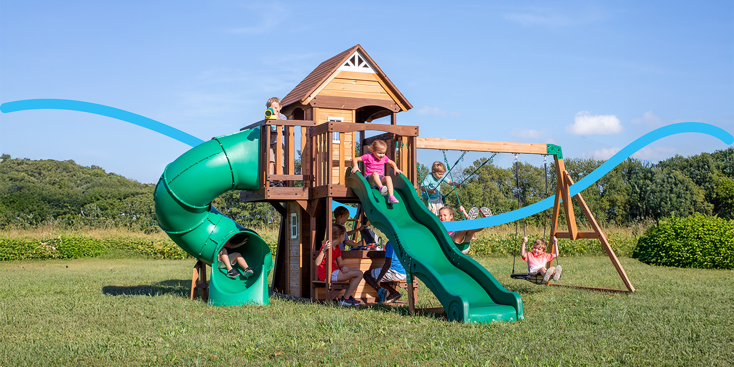 Explore our wide range of enchanting swing sets and select the one that fits your dream backyard.
