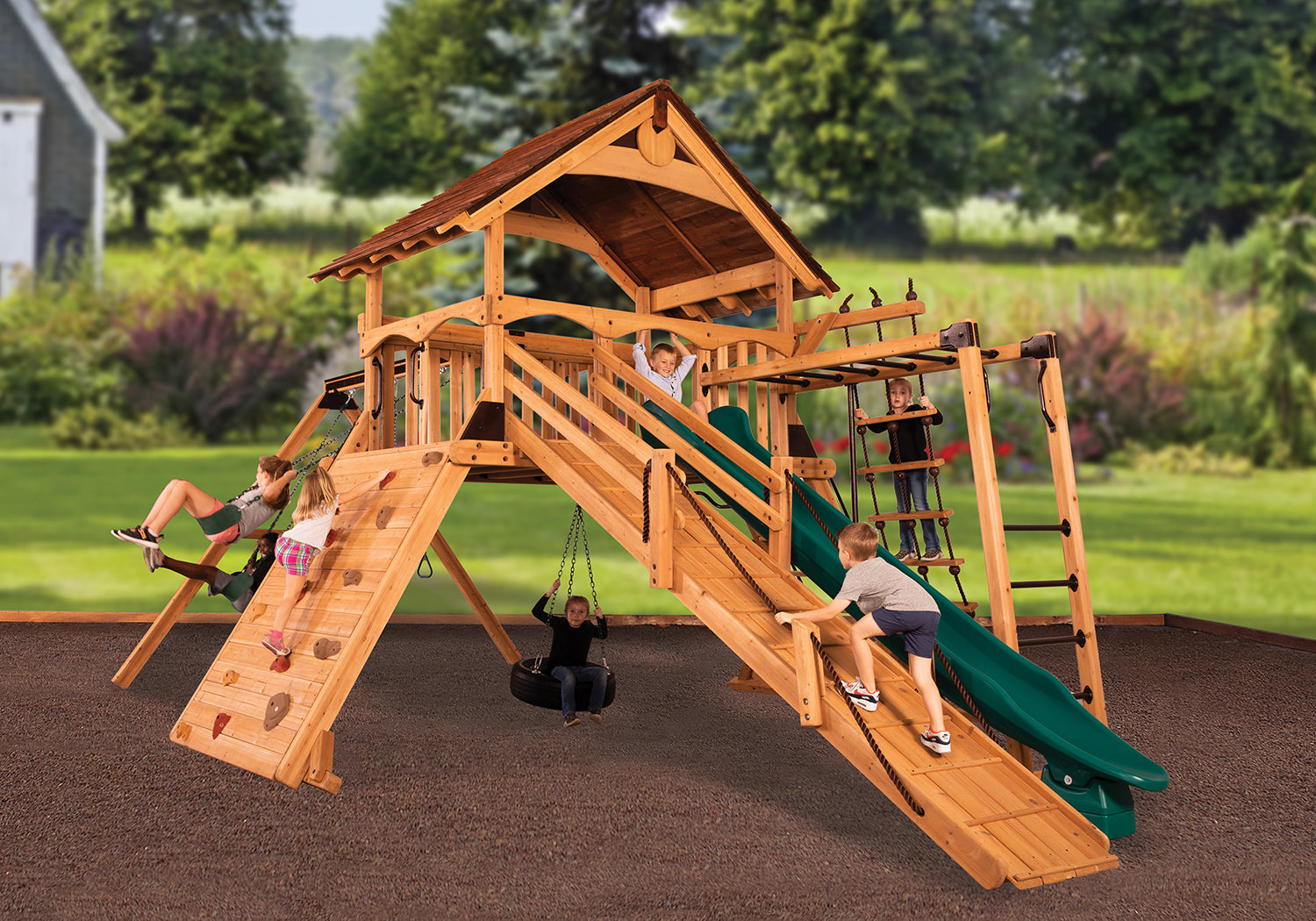 Con barre di arrampicata, scala di corda, scivolo a razzo e passerella, offre un'esperienza di arrampicata completa. Costruito in cedro di prima qualità e coperto da una garanzia a vita limitata, è pensato per un divertimento duraturo.