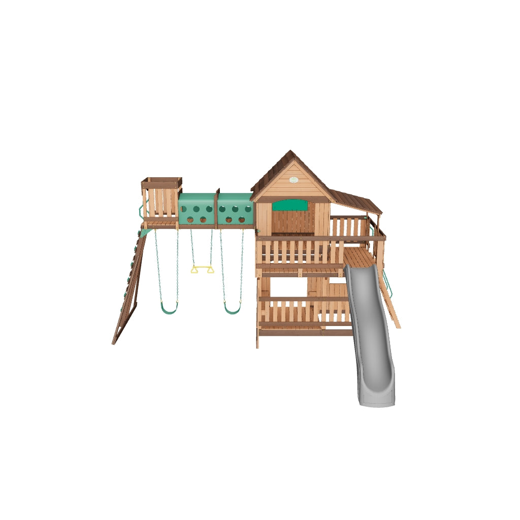 Incoraggia i bambini a essere attivi e a divertirsi con il Woodridge Parco Giochi in Cedro. Possono giocare e rilassarsi nei fortini superiore e inferiore, scaricare le energie sulla parete da arrampicata e sulle altalene, e sfrecciare fino a terra con lo scivolo a onda di 3 metri. Installa questo parco giochi in legno nel tuo giardino per offrire ai tuoi bambini un’avventura emozionante senza fine. Con due altalene a cinghia, un trapezio e una panchina, il Woodridge permette anche di riposarsi dopo il gioco. Un tunnel sopraelevato crea il nascondiglio perfetto per appassionanti partite a nascondino.