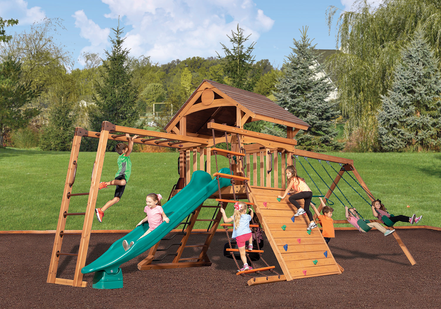 Małpi gaj, drabinka linowa oraz emocjonująca, 3 metrowa rakietowa zjeżdżalnia zamieniają codzienną zabawę w wielkie wyprawy i wyścigi na czas. Całość została wykonana z najwyższej jakości drewna cedrowego i objęta dożywotnią gwarancją na konstrukcję, więc to inwestycja w wiele lat bezpiecznej, rodzinnej zabawy.