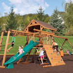 Adventure Summit XL 2 jest stworzony dla dzieci, które kochają się wspinać, huśtać i zjeżdżać bez końca. Podest na wysokości 1,5 m i ponad 2,3 m² przestrzeni do zabawy wnoszą do ogrodu naprawdę dużo energii w przemyślanej, harmonijnej konstrukcji.
